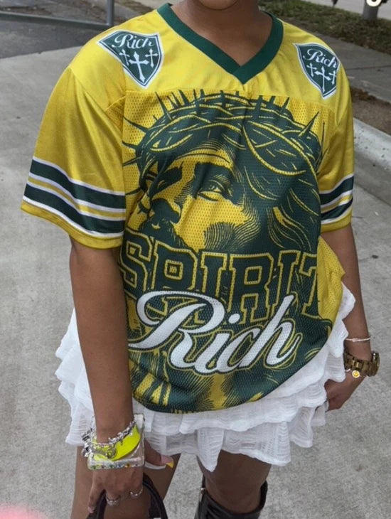 The Jesus Jersey™ blends modern streetwear with a bold message of faith. Its boxy, slightly cropped silhouette gives it that authentic jersey look — relaxed yet structured.