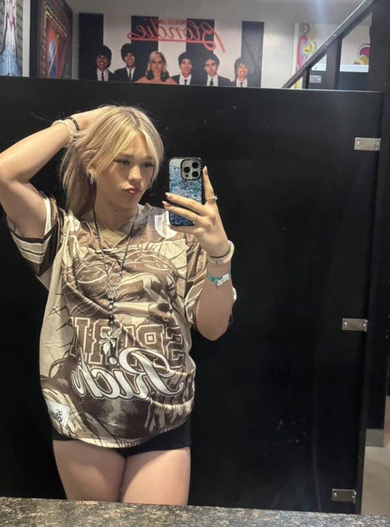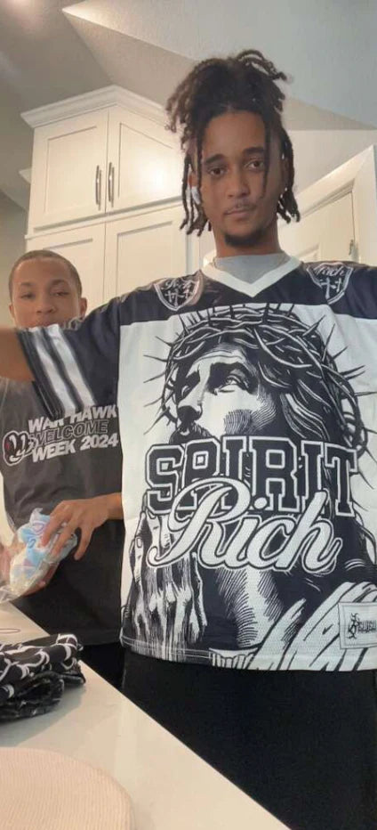 The Jesus Jersey™ is designed as a unisex piece — made to look good on everyone. Women usually size down for a regular fit, while men can order their true size or one up for a relaxed, streetwear look.